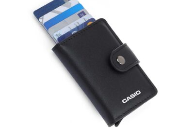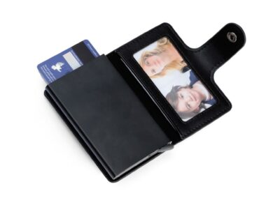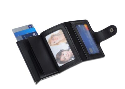 RFID Cardholder Wallet with smooth sliding mechanism. Holds up to 7 cards & can carry cash too. Packed in a gift box.