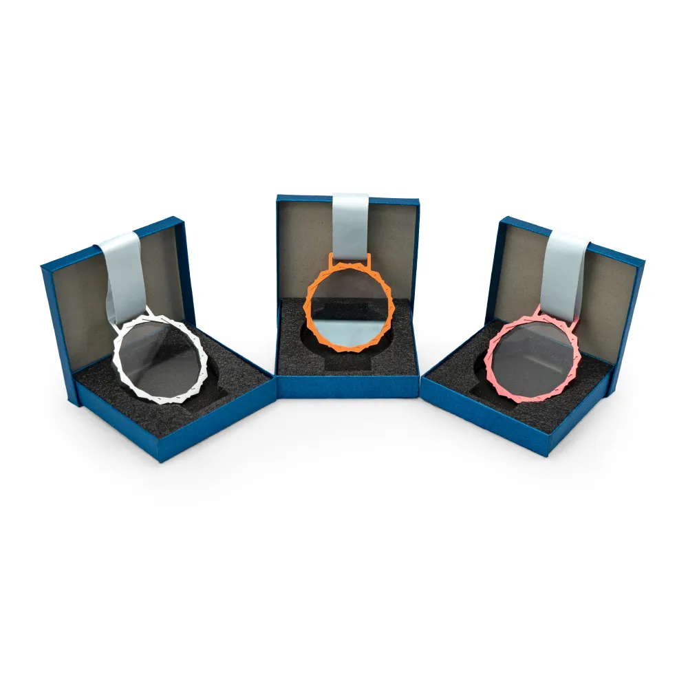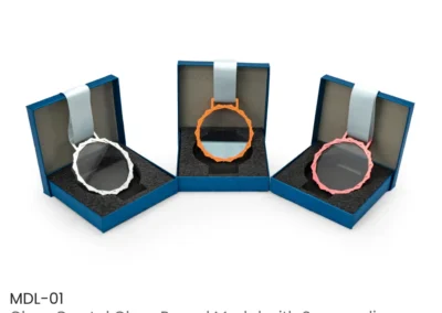 Material: Glass and Metal | Item Size: 78 × 7 x 78 mm | Item Weight: 0.117 kg, Celebrate excellence with our Premium Round Clear Crystal Glass Medals, expertly crafted to make a lasting impression. Each medal features a flawless, transparent crystal centerpiece, securely encased in a sleek, high-quality metal frame, available in your choice of Indochine Gold, Silver, or Coral Red finishes.