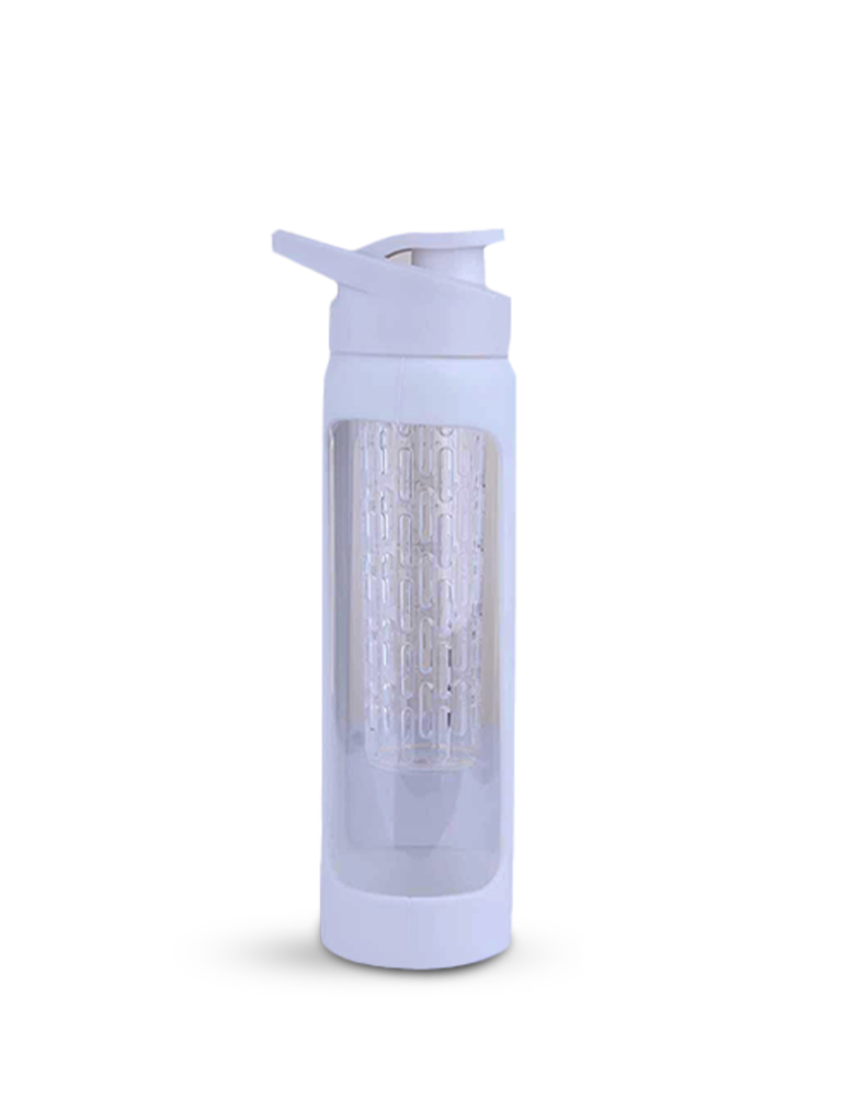 GLASSY, a stylish and functional 550ml fruit infuser glass bottle designed for health enthusiasts and flavor lovers alike. This innovative bottle allows you to infuse your water with fresh fruits, herbs, or tea, giving you a refreshing beverage that enhances hydration and taste.The GLASSY features a durable single wall design made from high-quality glass, ensuring that your drinks are free from harmful chemicals. The silicone cover and lid provide a secure grip and a leak-proof seal, making it perfect for on-the-go use. With dimensions of 24 x 6.5 cm (diameter), this bottle fits comfortably in your hand and most cup holders.Packaged in an elegant white paper box, the GLASSY makes a thoughtful gift for friends, family, or colleagues who appreciate healthy living and stylish drinkware