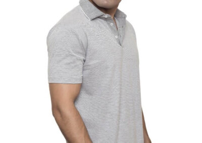Premium Golf Polo in pre-dyed yarn. Quality comparable to top brands. Collar is high quality jacquard in yarn dyed. Collar band and Placket in biased contrast stripes matching to body.