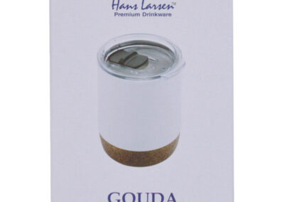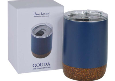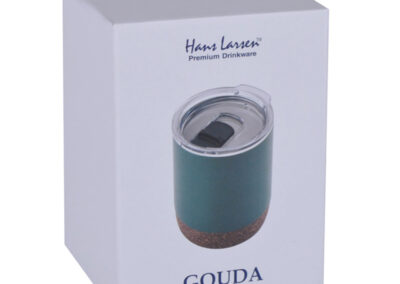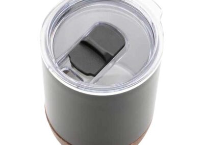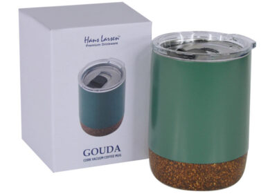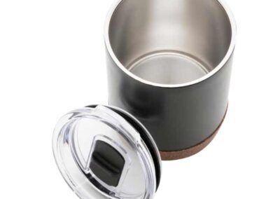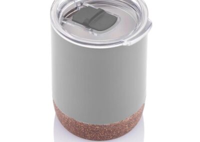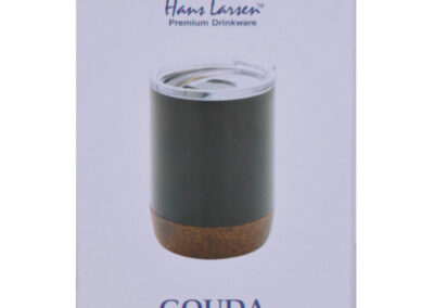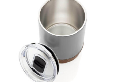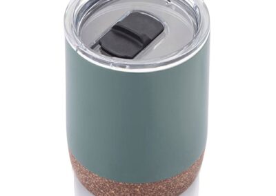 Vacuum insulated cork coffee mug with unique cork detail. Made with Stainless Steel grades SS304 inside and SS201 outside. Keeps your drinks hot for up to 5h and cold up to 15h. Fits most coffee machines. Content: 180ml.