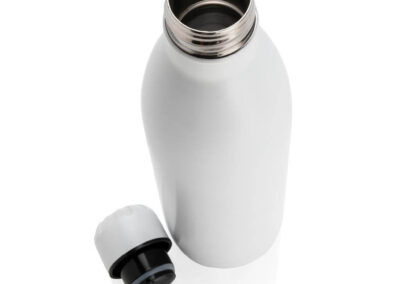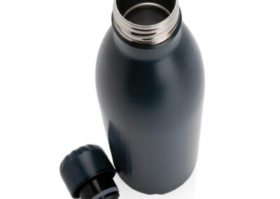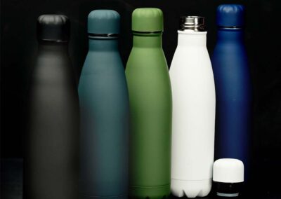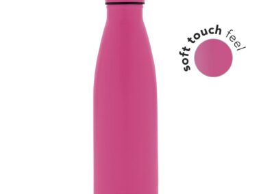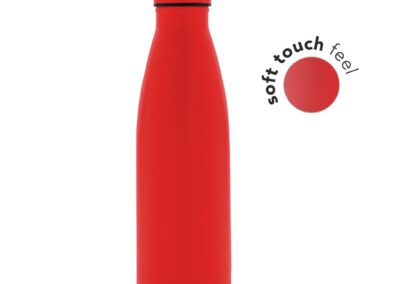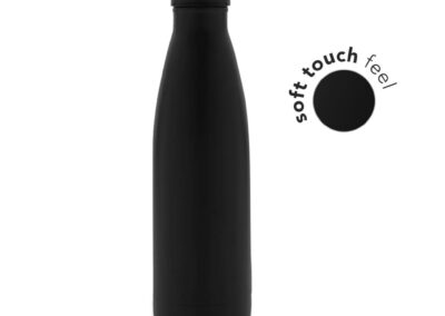 The classic vacuum insulated stainless steel water bottle with a unique rubberized finish for a premium look, soft touch and feel. The bottle keeps chilled beverages cold for up to 10 hours and hot drinks warm for up to 5 hours. This bottle will keep you hydrated on the go wherever you are. Capacity 500ml, Leakproof, SS 304 inside SS 201 outside. Packed in a gift box