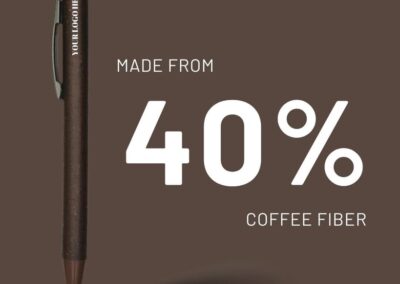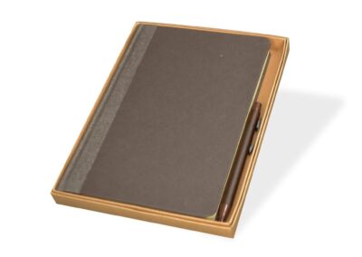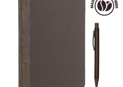 Helsinki is a set of A5 Hard Cover Notebook made with coffee fiber cover and 192 pages of coffee colored recycled paper, and a ballpoint pen with barrel made from 40% coffee fiber material. Coffee fiber is a circular material made from waste generated in coffee cultivation.