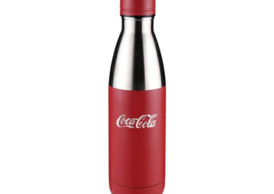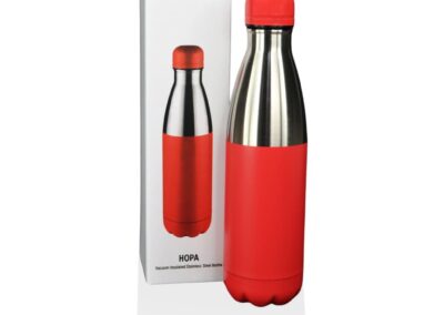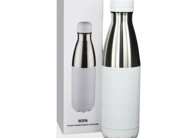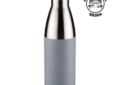 Classic double walled vacuum insulated water bottle with corrosion-resistant 304 Grade Stainless Steel for both inside and outside walls. Unique half-coating provides an elegant look and powder coated for stone-touch feel. Leakproof. Maintains drinks hot for 6 hours, and cold up to 12 hours. Content: 500ml