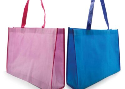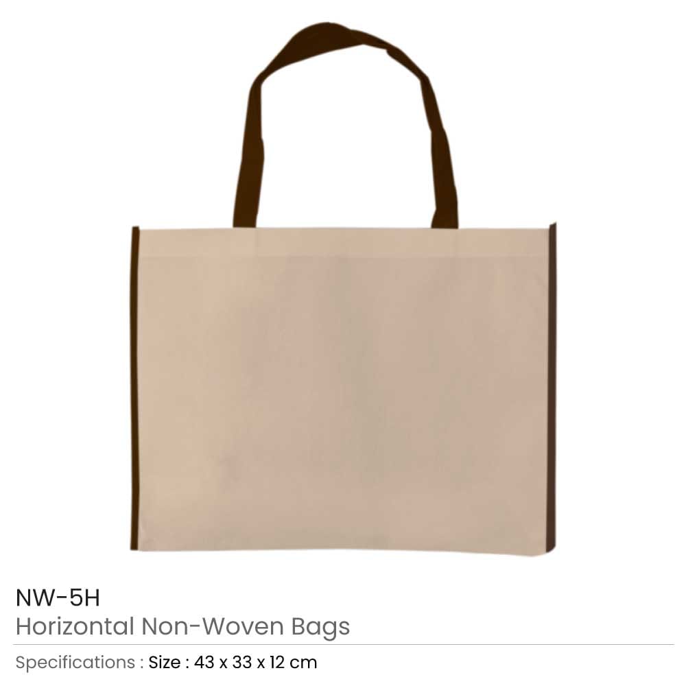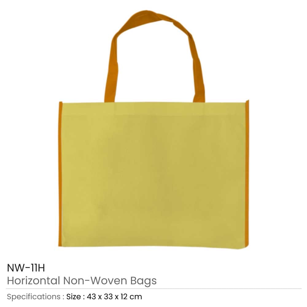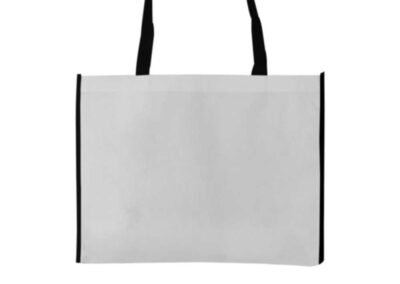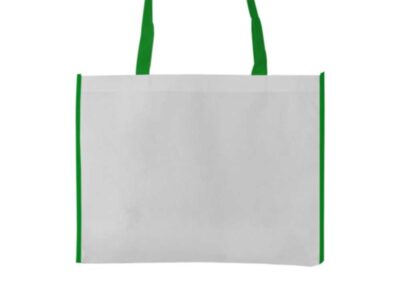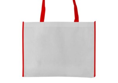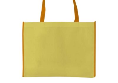 Material: Non-Woven | Item Size: 43 x 33 x 12 cm | Item Weight: 0.058 kg, Two-color horizontal non-woven bags are biodegradable. These bags have a straightforward yet stylish design. These bags were made from non-woven materials. It denotes that they are neither knitted nor weaved. They were, however, built from permeable, flat, biodegradable sheets. These sheets were constructed from long and stapled fibers. Consequently, these bags are stronger than ordinary bags. It has a white, horizontal surface with a vibrant outline. But the handle is vibrant. Compared to other bags, they are more durable. They can therefore support more weight.