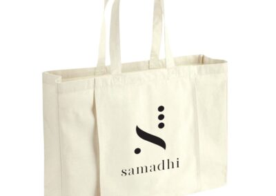 A spacious canvas yoga bag made of 10oz laminated cotton. Made with a large front pocket ideal for carrying your yoga mat, while the large tote bag can hold all your shopping essentials and personal belongings.