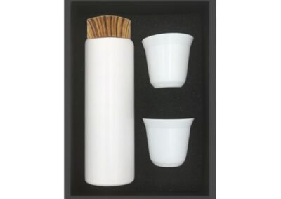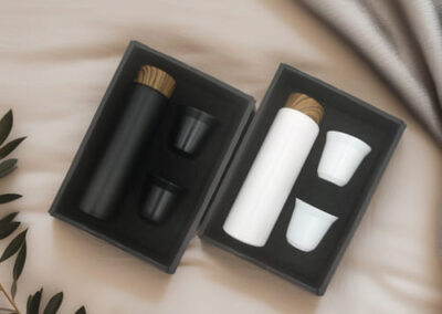 Elevate your coffee moments with this sleek gift set featuring one large 400ml stainless steel bottle and two 80ml mirror-polished coffee cups. Crafted with a durable inner SS304 and outer SS201, each piece ensures lasting quality and a premium feel. The set comes beautifully packaged in a black gift box with soft foam cushioning, and features a laser-engraved logo on the cup bottoms for a refined touch. Ideal for gifting!