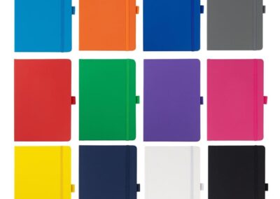 Giftology A5 Promotional Notebook with PU Cover and Pen Holder. Contains 192 pages of 70g paper. Comes in 13 colors