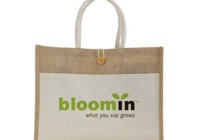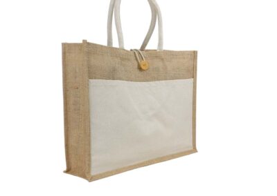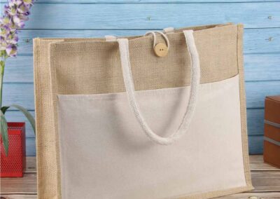 Material: Jute and Cotton | Item Size: 45 x 35 x 12 cm | Item Weight: 0.293 kg, The branding potential of jute bags with cotton pockets is enormous. Our bags have a clean, straightforward style. These promotional bags were made from jute that was grown naturally. They are therefore of a great grade. Additionally, it has one cotton pocket on the front. It offers adequate room to hold your belongings, thus. It also contains a button and a hook made of thick thread. These bags’ horizontal design makes it possible to carry more stuff. They are effective goods for promoting a brand because of this. They make excellent promotional bags for apparel companies. For imprinting logSet product imageos or designs on them, express option, heat transfer printing, and screen printing are all options.