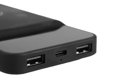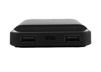 10000 mAh power bank made from abs plastic exterior. It comes with a 30cm Type-C cable, dual USB and type-C output.