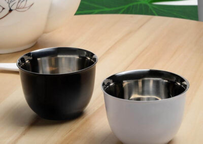 A set of 2 Arabian coffee cups (known as kahwa or qahwa cups) made from durable double walled 18/8 stainless steel inside and outside for long lasting thermal insulation. Indulge in the rich traditions of serving the famed Arabic tea or coffee with your own portable Kahwa cup! Each cup holds 90ml of liquid.