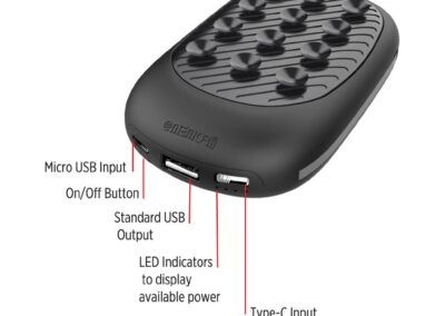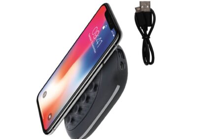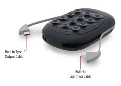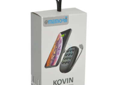 Kovin is a 10000 mah powerbank with light-up logo function for optimal brand exposure. The suction pads help in secured attachment and convenient detachment of the powerbank from your phone, and the built-in Micro USB, Lightning and Type C cables ensure any device can be charged without looking for the right cable. Packed in a Gift box. Input & Output- 5V/2.1A, Wireless Output- 5V/1A 5W.