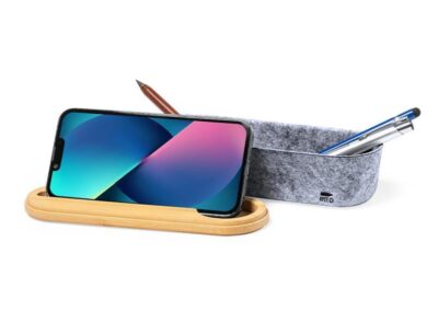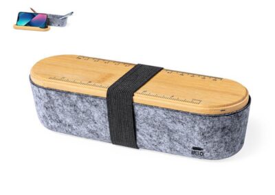 Labin is a multi-functional stationery / pencil case made of bamboo lid and Recycled RPET Felt Material. The lid can also be used as a ruler (cm and inch) or as a phone stand when inverted. Comes with an elastic fastener. Packed in an eco kraft box.