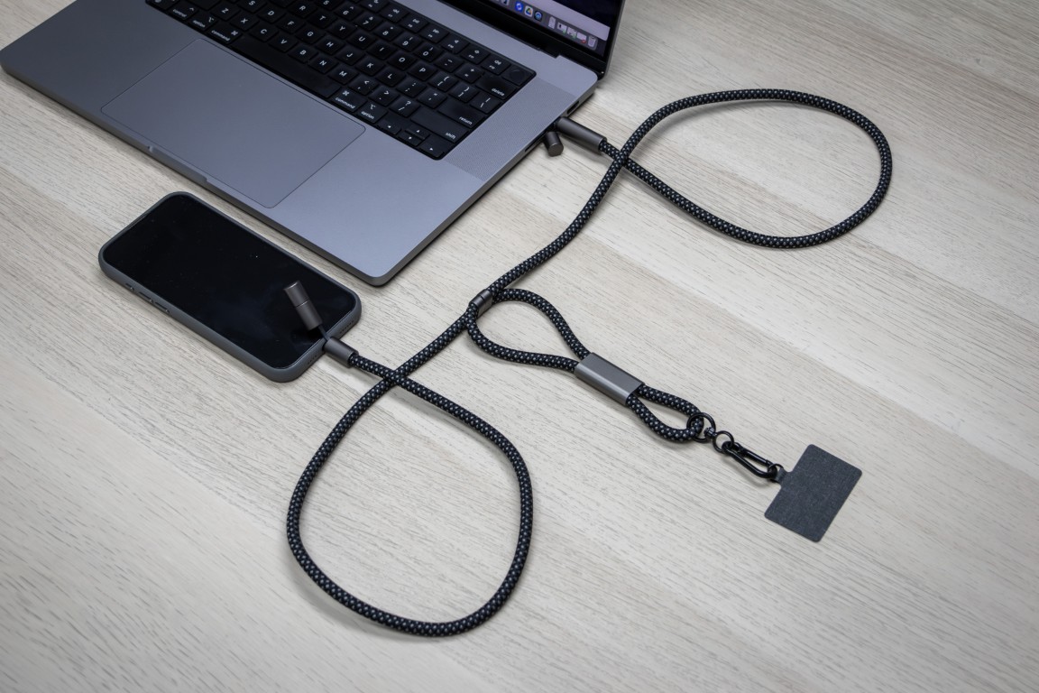 versatile cord doubles as a stylish phone strap and a powerful 60W