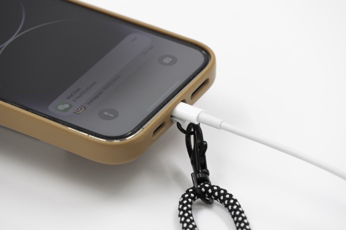 Compatible with most phone cases, Adjustable cord length , 6 mm Ø strong rope, Charging cable friendly