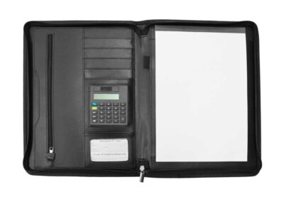 Leather Portfolio with Zipper and Calculator
