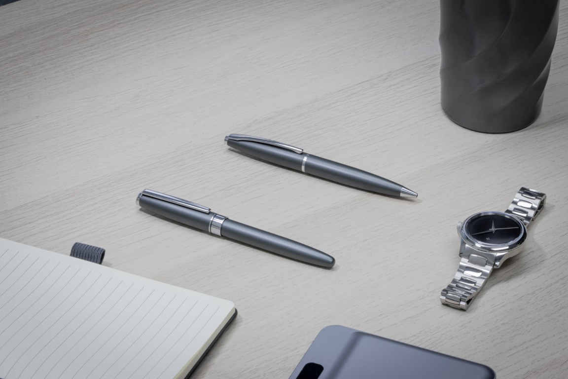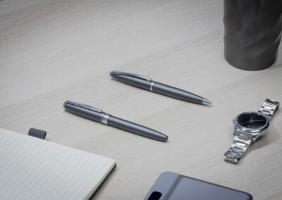 Its defining feature is a satin metal finish, complemented by a high-polish center band and clip, offering the fine detailing associated with luxury pens. The solid twist mechanism provides a premium feel, and paired with a Swiss made TC tip and German ink, it guarantees a perfect writing experience.