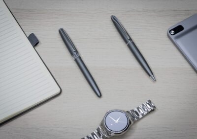 The Luna Pen combines gleaming gunmetal and silver accents to create a classic design that exudes confidence and style.