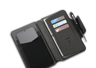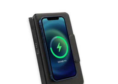 5W MagSafe Daily Use is a classy wallet with built-in wireless 5000MAH powerbank made from a Special PU material. Has Pen holder, card holders, magnetic pocket and lycra pocket with welding non stitching technology. Power system in the spine with LED power indicator. Product Size: 18.2x11x2.5cm. Packaging: Black Drawer Box