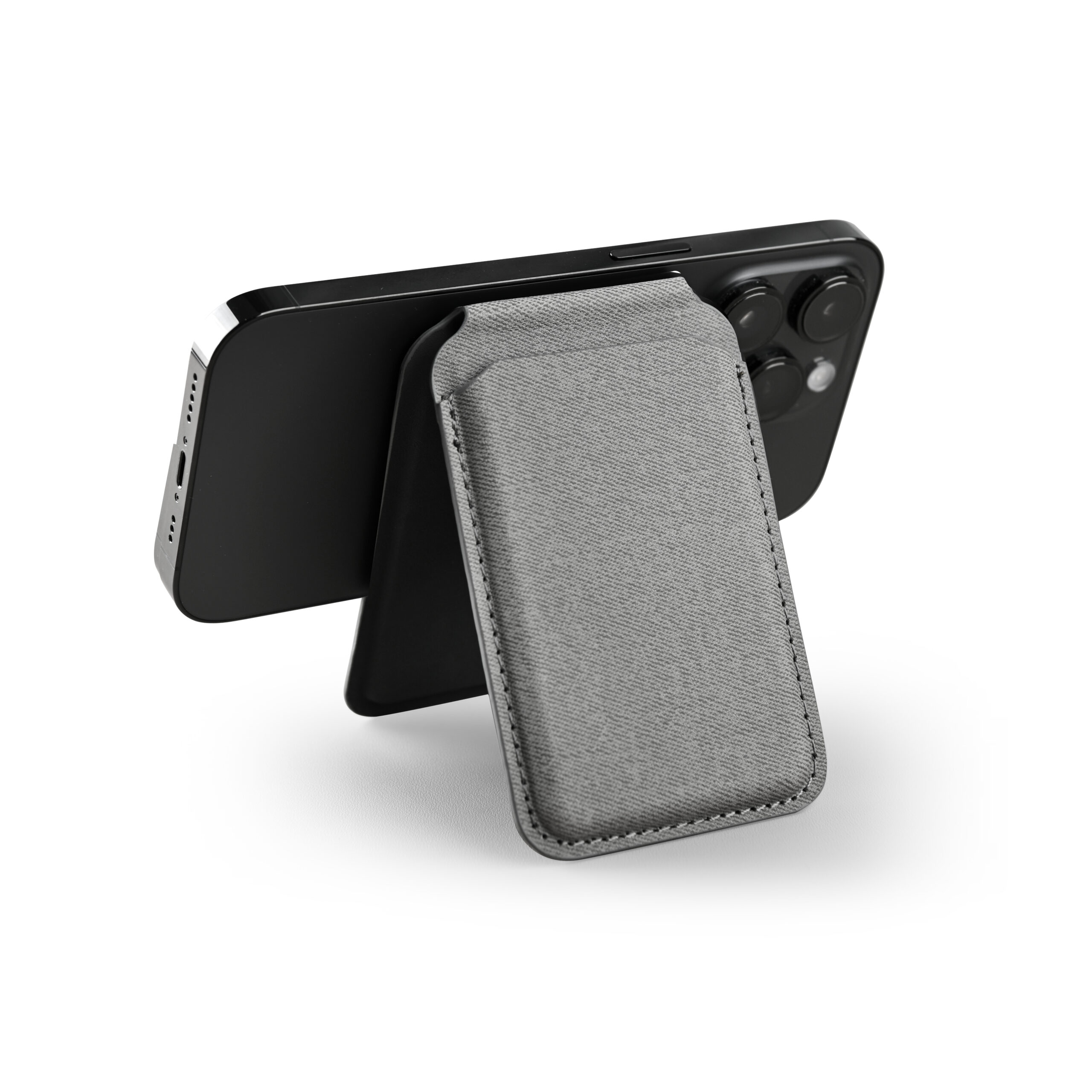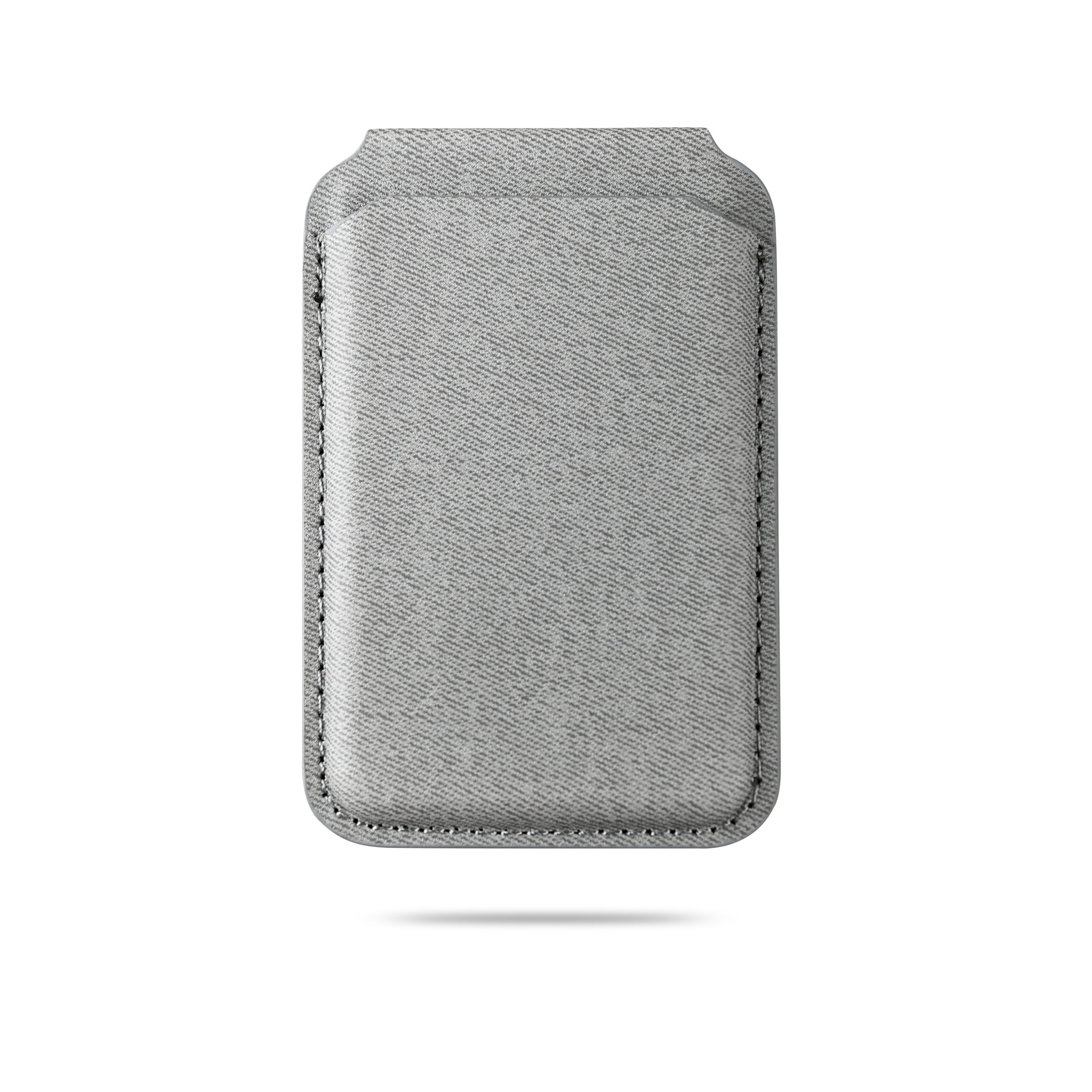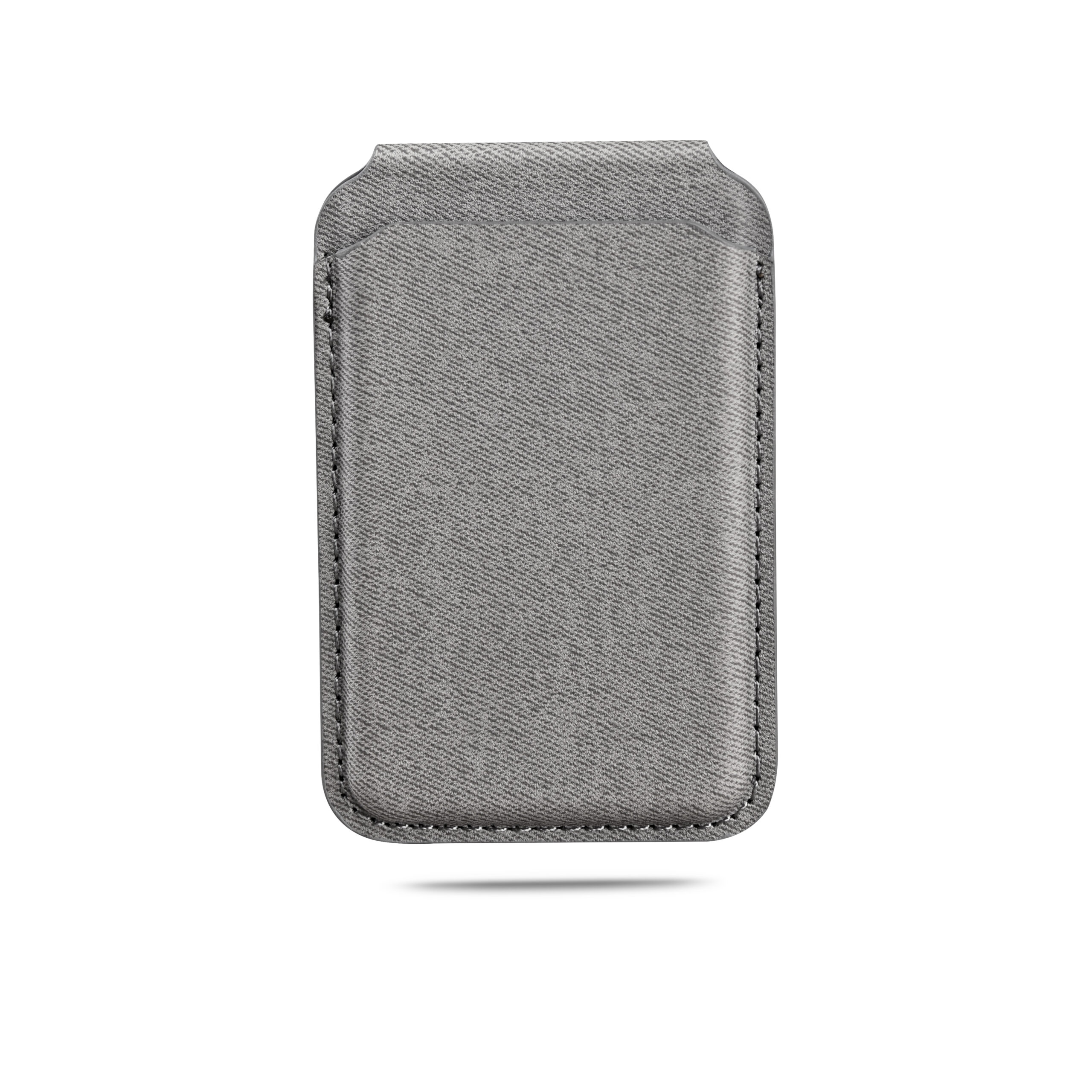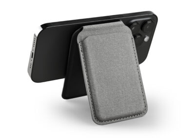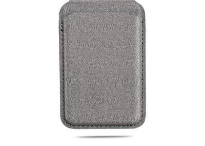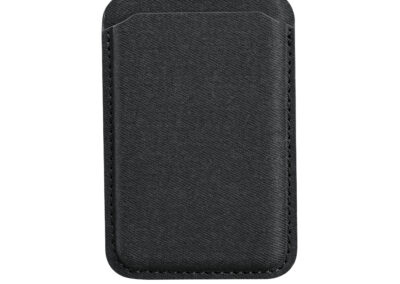 Magnetic card holder wallet that can be used as a mobile stand in recycled PU Material. Strong magnet that can stick on mobile firmly. Product Size: 9.9×6.4×0.8cm. Packaging: Kraft Paper Box