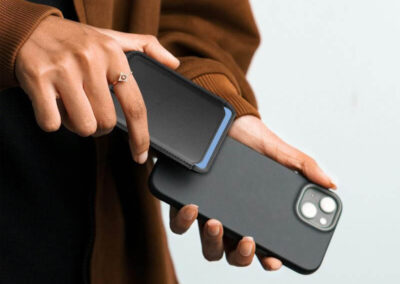 MAG3 is a magnetic PU card holder that snaps to your MagSafe smartphones and can hold up to 2 cards. It also doubles as a 3-in-1 magnetic wireless charger supporting 15W, 5W, and 2.5W output for wirelessly charging smartphones, wireless earbuds or iWatch. Packed in a gift box and includes a charging cable.