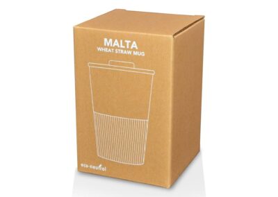 Malta is a reusable 350ml coffee mug made from eco-friendly wheat straw material. Includes a silicone grip for comfortable holding even while hot. Dishwasher safe. Packed in a kraft paper gift box.