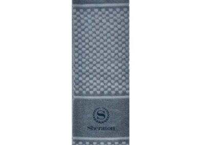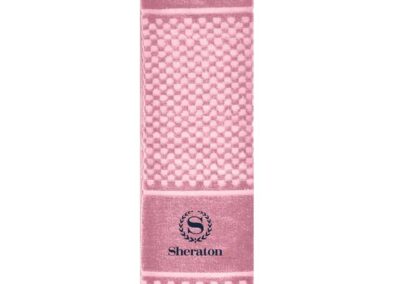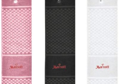 Sports cotton hand towel with carabiner clip. Great for golf, tennis, cycling, running, etc. Made with 500GSM terry cotton