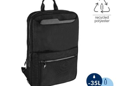 Santhome® CHANGE Laptop Backpack made from high-end durable 1680 recycled rPET (certified by GRS) and stylish leather components. Elegant executive design. Extra zipper provided expandable storage space. Each recycled bag saves 35L of water and reuses 14 plastic bottles, and makes an impact by contributing to Water.org – a global NGO that provides millions in need with access to safe water and sanitation. By giving to Water.org, you are giving a GIFT THAT GIVES BACK.