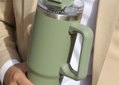 MEGAFLASK, a stylish and functional mug designed for those who appreciate quality and convenience. With a generous capacity of 900ml, this double-wall mug is perfect for keeping your beverages hot or cold, making it an ideal companion for any occasion—whether at home, in the office, or on the go.The MEGAFLASK features a durable 304 stainless steel interior that ensures excellent insulation thanks to its vacuum design. The exterior boasts a vibrant powder-coated finish, providing a slip-resistant grip while adding a pop of color to your drinkware collection. This mug also comes equipped with a stainless steel straw featuring a silicone cover, allowing for safe sipping, along with a handy cleaning kit to keep your accessories in top condition.With dimensions of 23.3 x 8.5 cm, the MEGAFLASK is perfectly sized for easy handling and fits in most cup holders. Packaged in an eco-friendly paper box, it makes an excellent gift for friends, family, or colleagues who value both style and functionality.