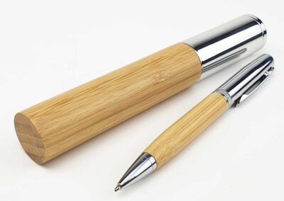 This kind of gift is so special. with beautiful designs and high-quality materials. A combination of Chrome and Bamboo, Lucia Metal, and Bamboo Pens are packed in a Bamboo Tube box with a chromed cap.