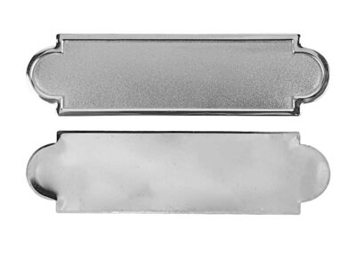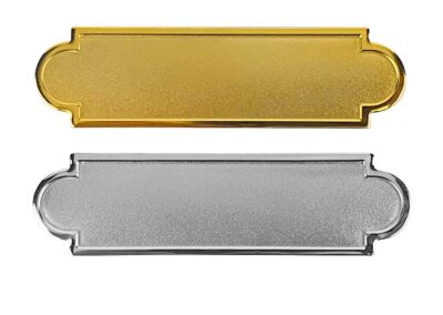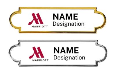 Metal name badges with printing option. Name badges made of metal can be personalized by having the employees’ names, corporate logos, and a wide variety of other designs printed on them in a way that gives them an exceptionally professional appearance. You have the option of selecting a gold or silver metal finish, and if you want to add some artistic flourishes, you may even add borders to your design!