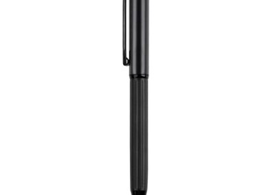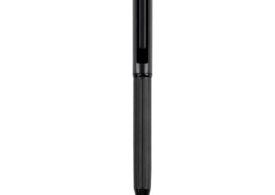 Metal Ballpoint Pen with lined barrel design. Twist action. Blue ink.