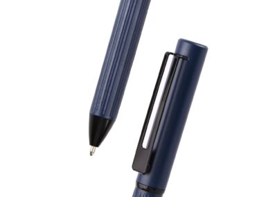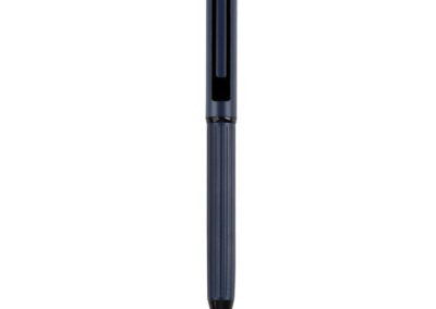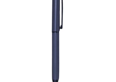 Metal Ballpoint Pen with lined barrel design. Twist action. Blue ink.