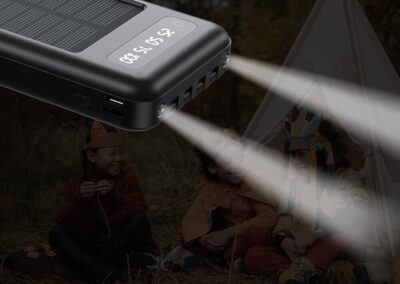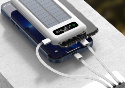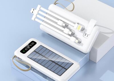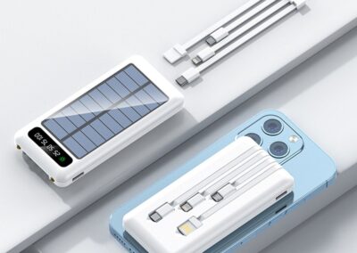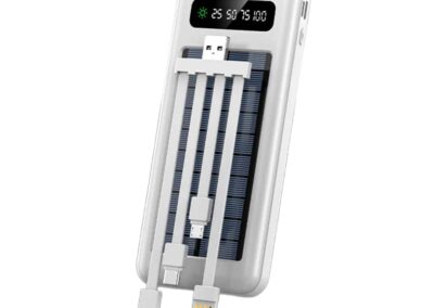 This 10,000 mAh solar powerbank combines sustainability with practicality in an efficient way. It includes a solar panel that can give the battery a boost, while you are outdoors. It includes all the major cables for any type of device built into the body of the powerbank, while allowing it to be detached for use with other devices if necessary. It also includes a mobile holder for conveniently using your phone, and a powerful dual flashlight making it a great companion for travel.