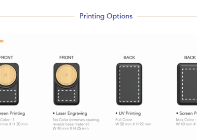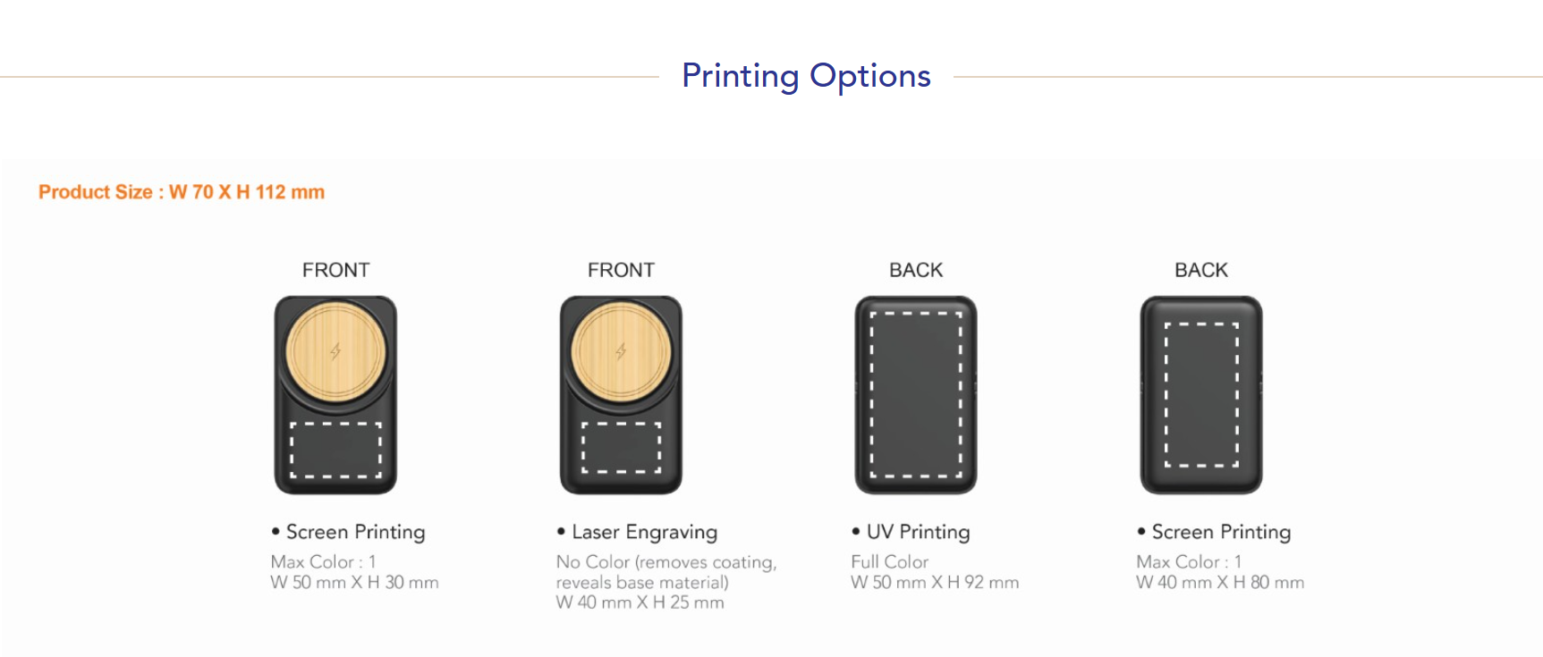 A 10000mAh magnetic powerbank with wireless charging made from ABS, rubber oil & bamboo. Comes with quick charge 22.5W+ PD 20W Type-C input & output. It features a foldable aluminium stand & white LED light.