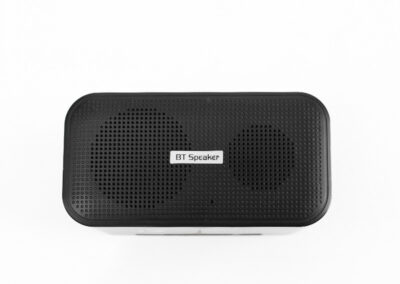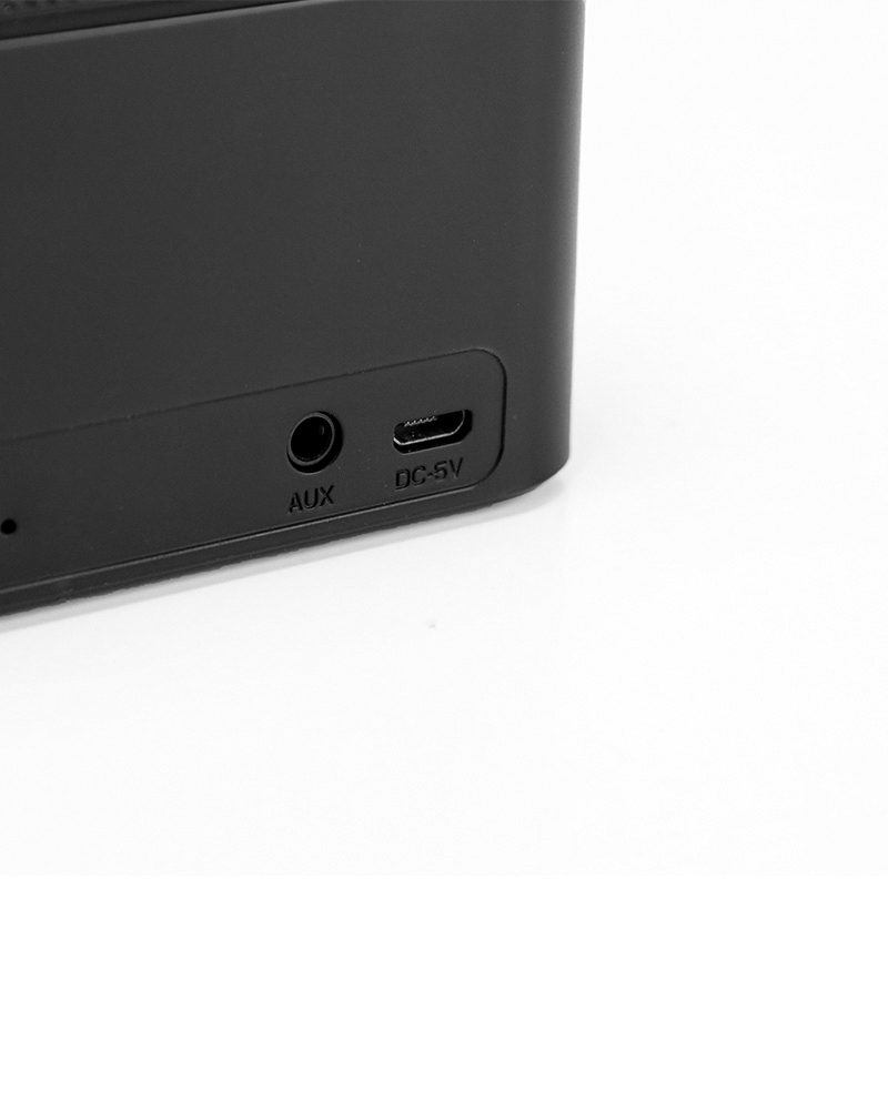A black wireless speaker made from ABS with matt oil. Comes with 300mAh Li-Polymer, type-C in put and 30cm type-C charging cable.