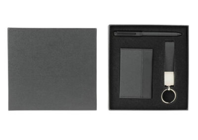 Narvik is a useful well-designed set of RFID card holder wallet, keyholder & a metal pen – all packed in an elegant gift box
