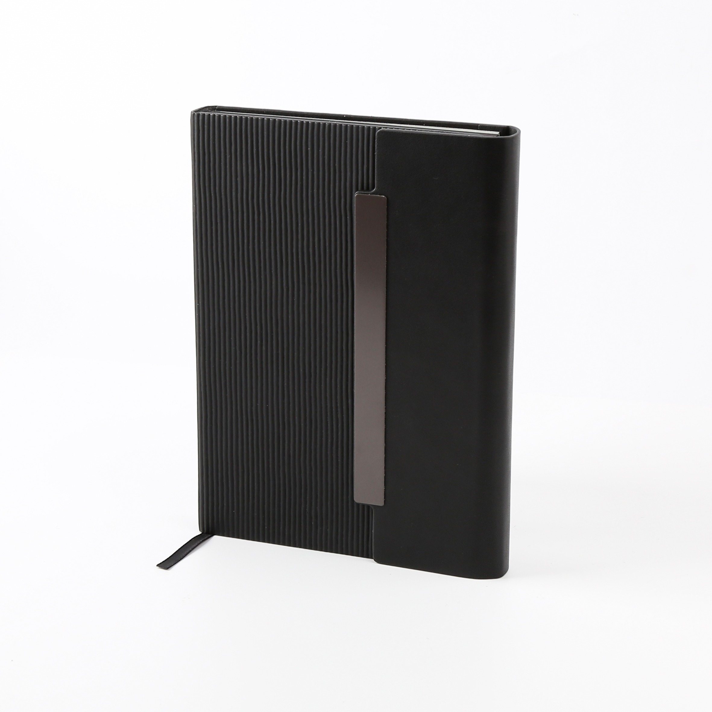 Stylish and functional notebook made with PU leather cover, 150 sheets quality paper, and steel binding. Product Size: 21×14.7cm. Packaging: Polybag
