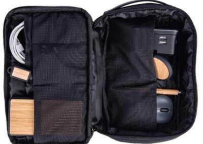 Santhome® CHANGE Technology Accessories Kit – made with high-end durable 1680D recycled rPET (certified by GRS) and stylish leather components. Organizes all tech accessories (like cables, chargers, power banks, adapters, etc.). Great for office or travel. Each recycled bag saves 9L of water and reuses 4 plastic bottles and makes an impact by contributing to Water.org – a global NGO that provides millions in need with access to safe water and sanitation. By giving to Water.org, you are giving a GIFT THAT GIVES BACK.