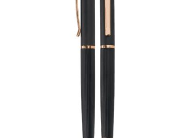 Pori is a Ballpoint Pen made of aluminum stainless and copper with matte black upper and lower barrel. Also with twist action and gold plated elements. Comes in blue ink. Available in two colors.