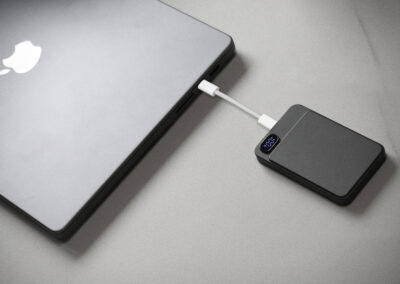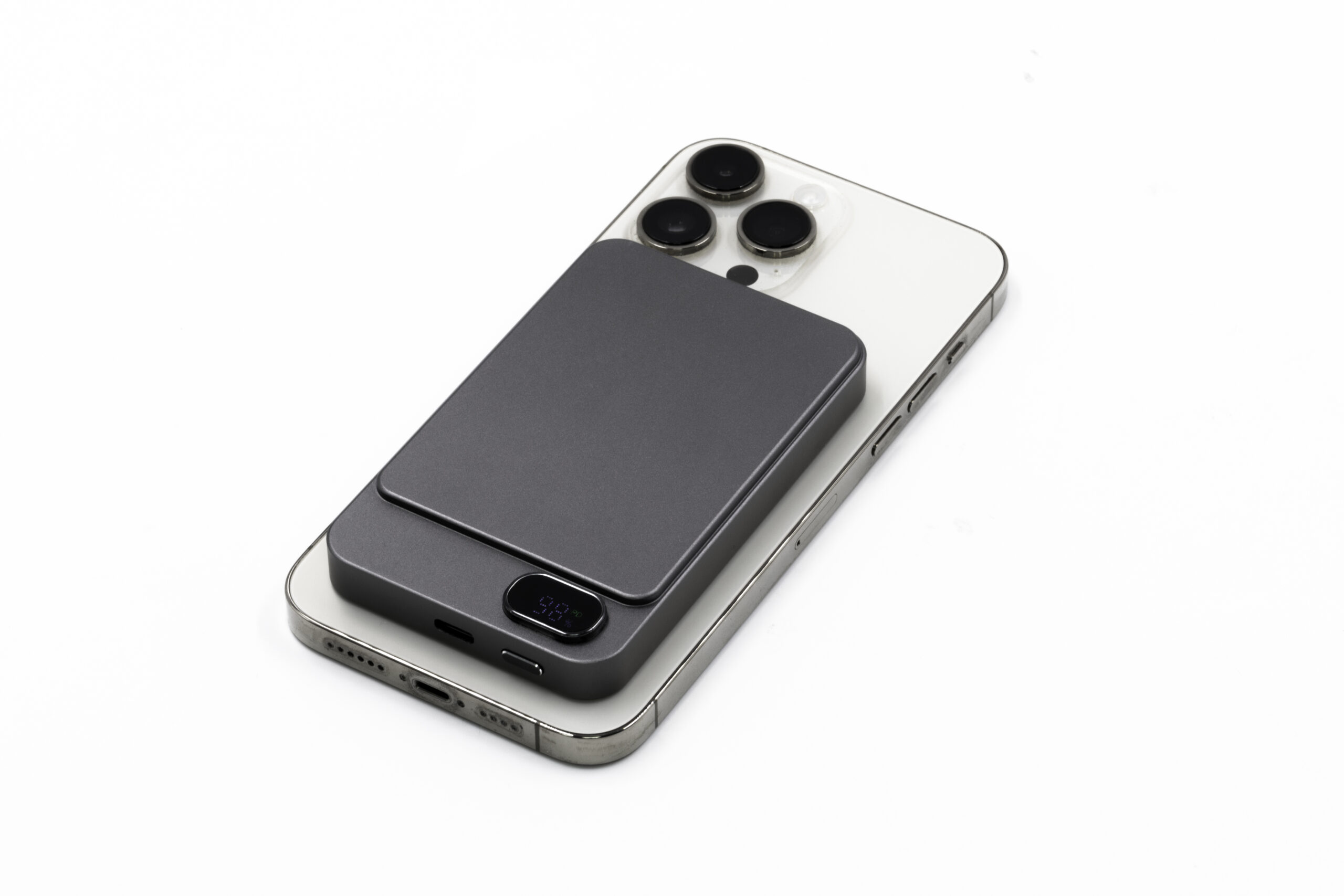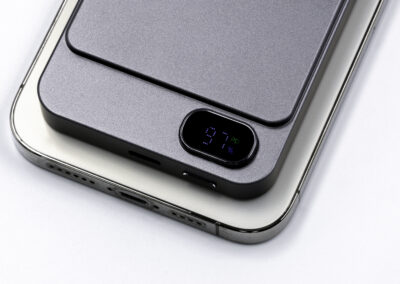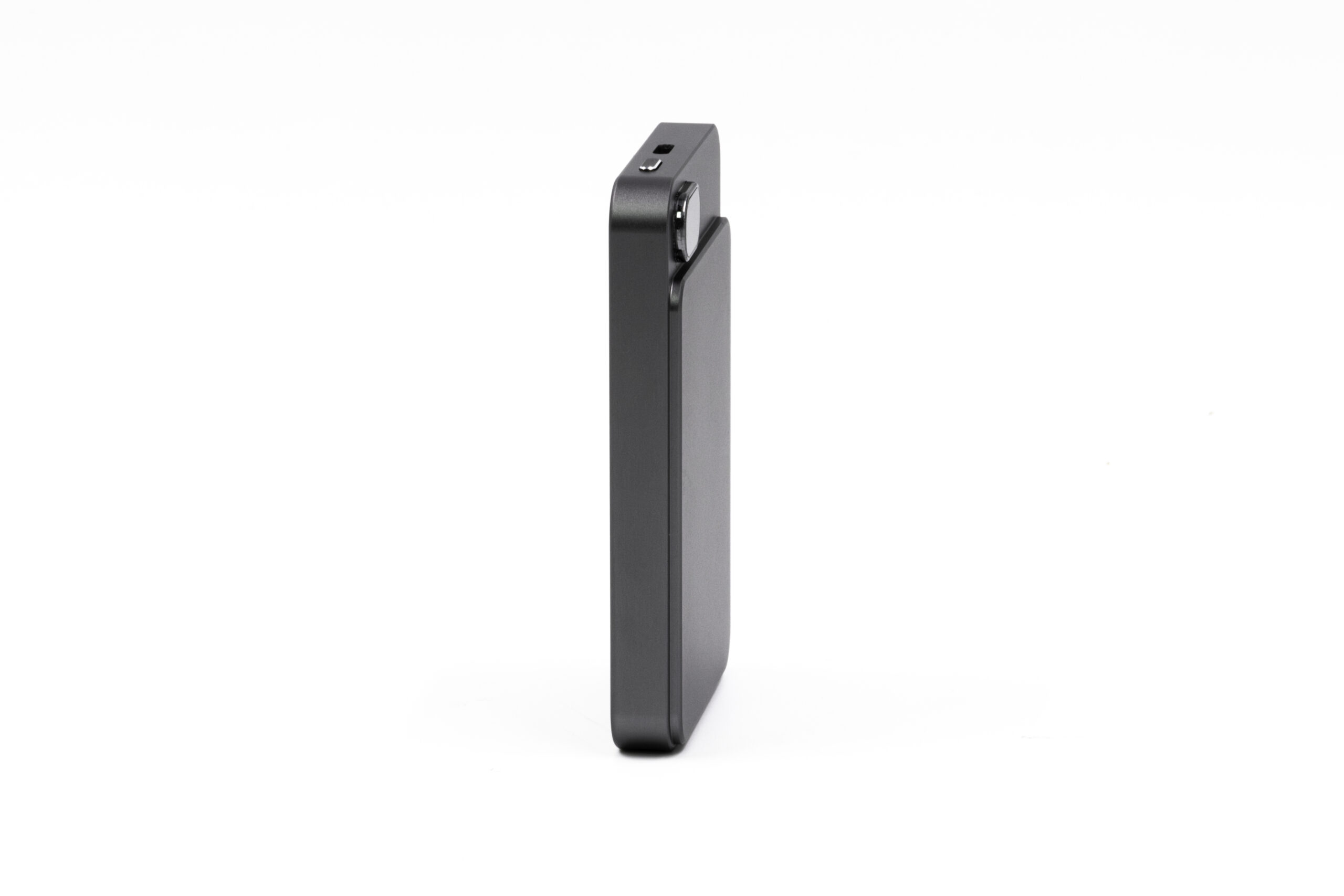 Powerwave 5000 has a sleek and thin aluminium unibody design that fits easily in any pocket. It has a capacity of 5,000 mAh supporting magnetic 15W fast wireless charging (magsafe, qi1 & qi2), so you can simply attach your compatible device on top of it and enjoy a hassle-free charge. It also has a 20W (PD 3.0) USB-C port, so you can charge your laptop or other devices with cables if needed. The clear LCD display shows the battery level and charging status.