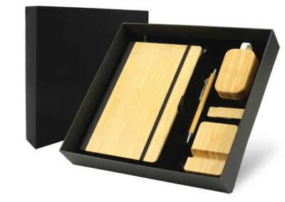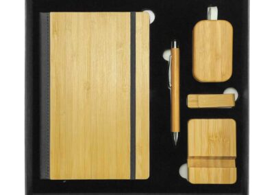 Corporate gifting can be enhanced with promotional tech gift sets that include a variety of bamboo-themed items, such as A5-sized bamboo notebooks, bamboo pens with styli, Bluetooth earbuds in bamboo cases, bamboo USB flash drives, and bamboo phone stands. These sets offer an innovative solution for environmentally conscious brands. Every element within this collection possesses distinctive characteristics that amplify its attractiveness.