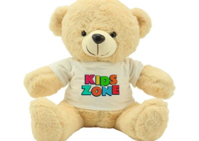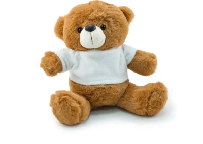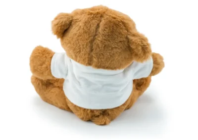 Material: White Polyester & (Synthetic Fur) Promotional Teddy Bear toys for promotions are available in Light brown color and wearing a white T-shirt. For the production of individualized stuffed animals, both white polyester and synthetic fur are commonly used materials. In addition, Teddy Bear wears a white polyester T-shirt with a pattern on it. There is an option for printing via heat transfer. Personalized Toys, such as Personalized stuffed toys, are beneficial to the social development of infants.