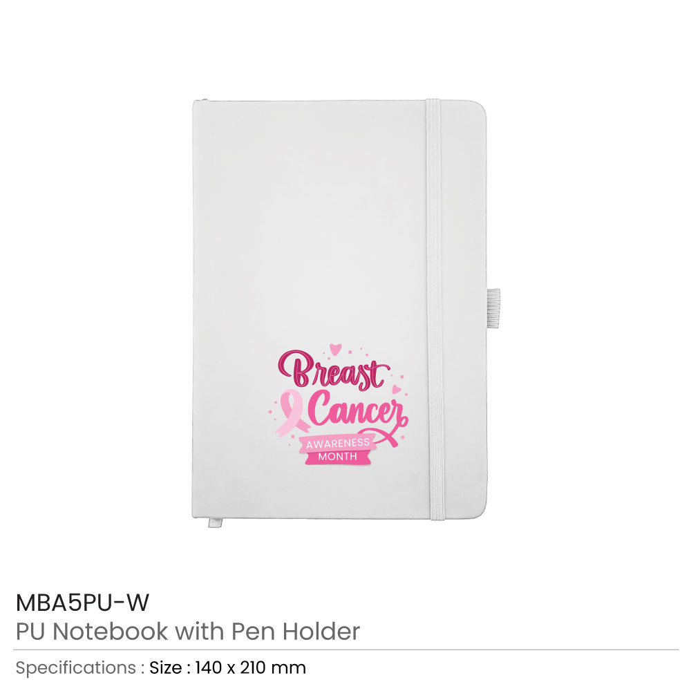 Notebook with Pen Holder in A5-sized, PU leather, 70g Ruled Paper and 96 sheets, PU notebooks featuring a breast cancer awareness logo are both practical and symbolic items that can help promote awareness, support fundraising efforts, and offer a stylish way to contribute to a cause.