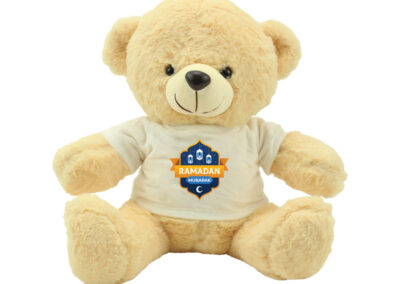 Promotional Teddy Bears in Light Brown Color Plush Toy with White T-shirt on, A Teddy Bear Toy as a Ramadan gift is a unique and adorable way to spread joy during the holy month. It can be a comforting and heartfelt gift for children or even as a token of affection for loved ones. Here’s why a Teddy Bear makes a great Ramadan gift: