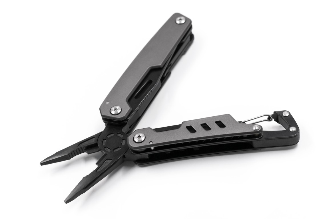 3CR13 combo knife, and comes with utilities for various crafts such as pliers, a saw,