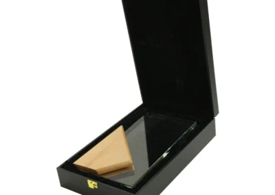 Material: Wood and Crystal | Item size: 125 x 35 x 220 mm | Weight: 1.571 kg, The rectangular wooden crystal awards, enclosed within a sturdy cardboard box, represent elegant tokens of recognition that harmoniously blend the aesthetic allure of crystal with the inviting qualities of wood. The purpose of these prizes is to recognize noteworthy accomplishments, great demonstrations of skill, or major landmarks in a range of domains, including corporate, athletic, academic, or philanthropic pursuits. The amalgamation of crystal and wood yields a visually striking and sophisticated accolade that is bound to make an enduring impact on the recipient.