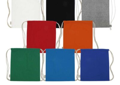 Material: Cotton | Item Size: 37 x 41 cm | 145 gsm, Recycled cotton drawstring bags made from recycled materials are excellent green bags. They are commonly utilized by many people. These bags were constructed of recycled cotton as well. They are strong, durable, and biodegradable as a result. These drawstring bags are also weatherproof and waterproof. They are quite strong despite being light. They can therefore transport enough items. The size of these promotional goods is roughly 37 x 41 cm. Due to their portability, these recycled cotton bags.