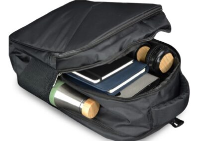 Rivne is a classic and practical backpack with monochromatic design made from polyester. This backpack comes with three (3) zippered compartments and one spacious front pocket. Also has two side pockets for water bottles. It has a padded top handle and adjustable back straps. Perfect for carrying your everyday essentials!