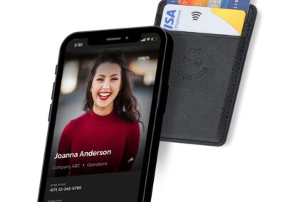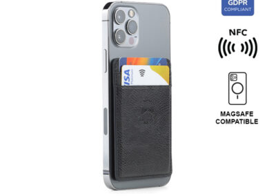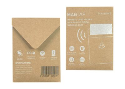 Roma is the first 2-in-1 magnetic mobile cardholder with inbuilt Santhome Card NFC digital business card function. Simply snap the cardholder on your MagSafe iPhone 12+ or use the provided metal ring to snap on Android and other phones too. Holds up to 2 cards. This wallet also becomes your digital business card with a tap. Any business leads can automatically receive your contact details, social presence, website and other marketing materials simply by tapping their NFC enabled mobile phones to your Roma cardholder! Now that is smart. Packed in a recycled kraft sleeve